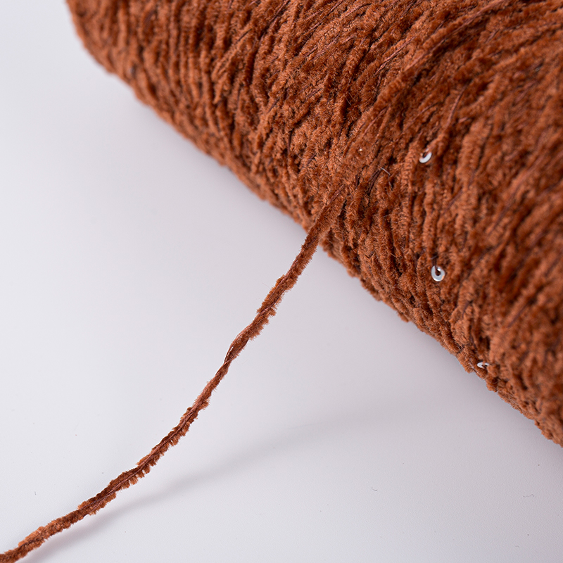 Hjem / Produkter / Polyester Sequin Yarn / Lysebrun chenille garn polyester paillette garn